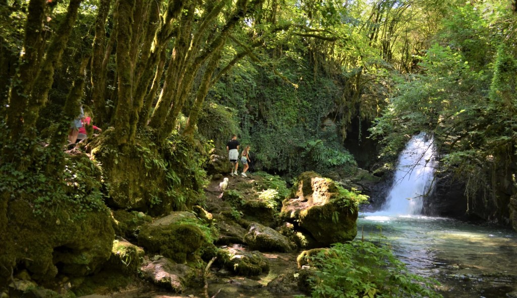 In pochi minuti si scorge il laghetto sottostante la meravigliosa cascata con le sue acquee limpide, il sole che filtra tra i rami dona un suggestivo effetto di luci e colori.