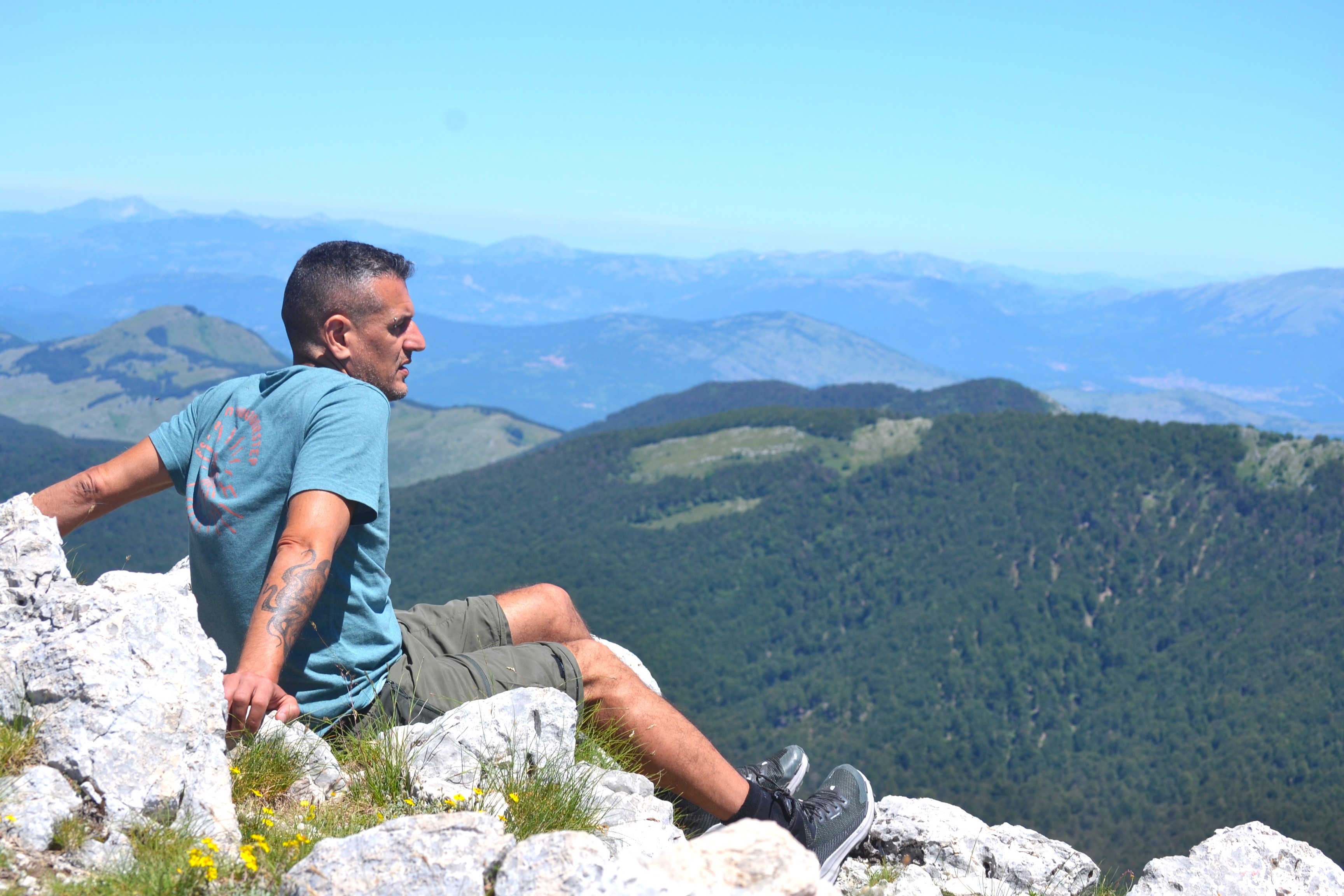 Tocchiamo la croce a 1960 metri, il premio è il meritato riposo e contemplazione di tale bellezza, un panorama a 360 gradi ci avvolge. Un’aquila guida il nostro sguardo dai Monti Simbruini agli appennini fino al Corno Grande del Gran Sasso.